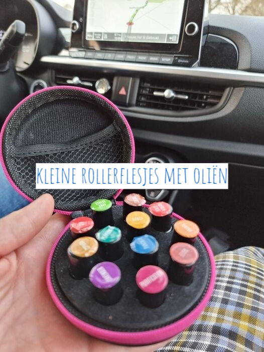 In de auto hebben wij tegenwoordig een handige clip, waar een filtje inzit, hier druppel wij een olie naar keuze op. Deze clip schuif je op het ventilatierooster in de auto.