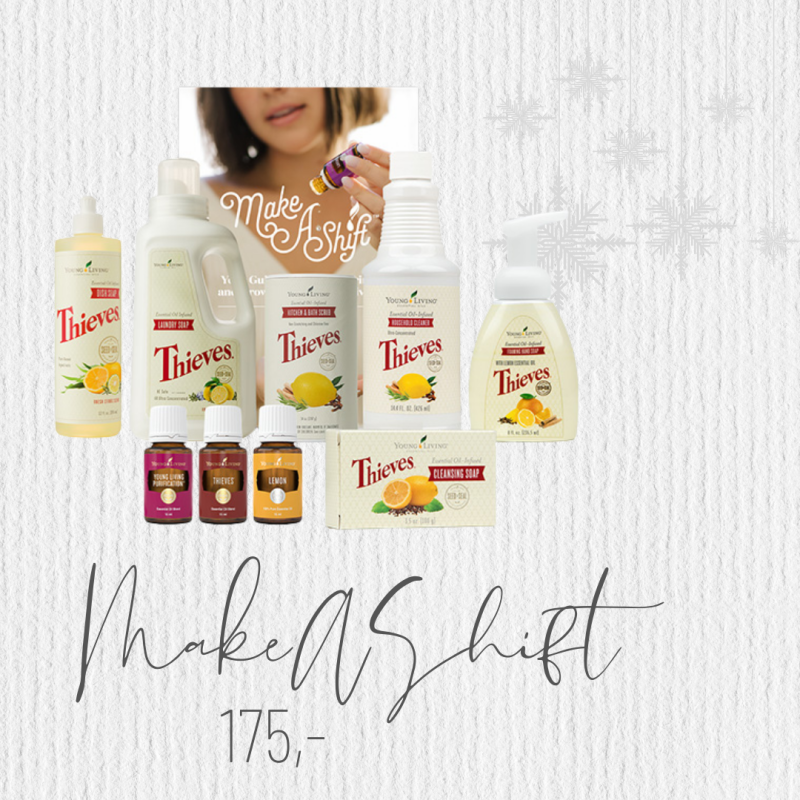 De Make A Shift with Thieves PremiumStarterKit bevat producten uit onze kenmerkende Thieves-collectie die bestaat uit zachte en effectieve alternatieven voor in huis en de schoonmaak.